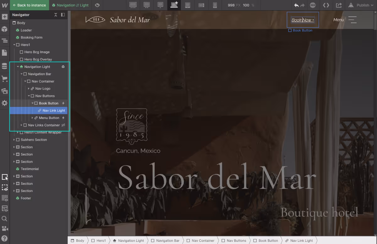 To edit the dark version of the navigation bar, simply open a page where only the dark navigation is present. An example would be 'The Hotel' Page.